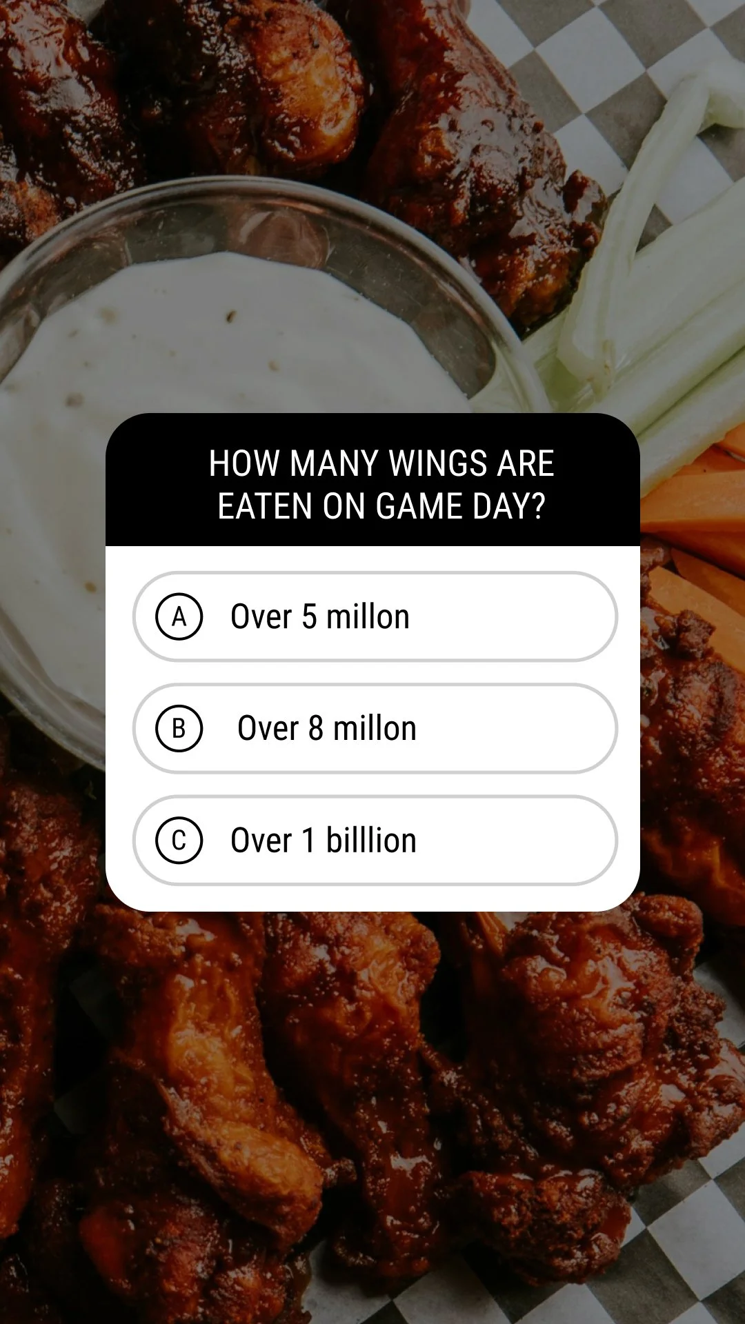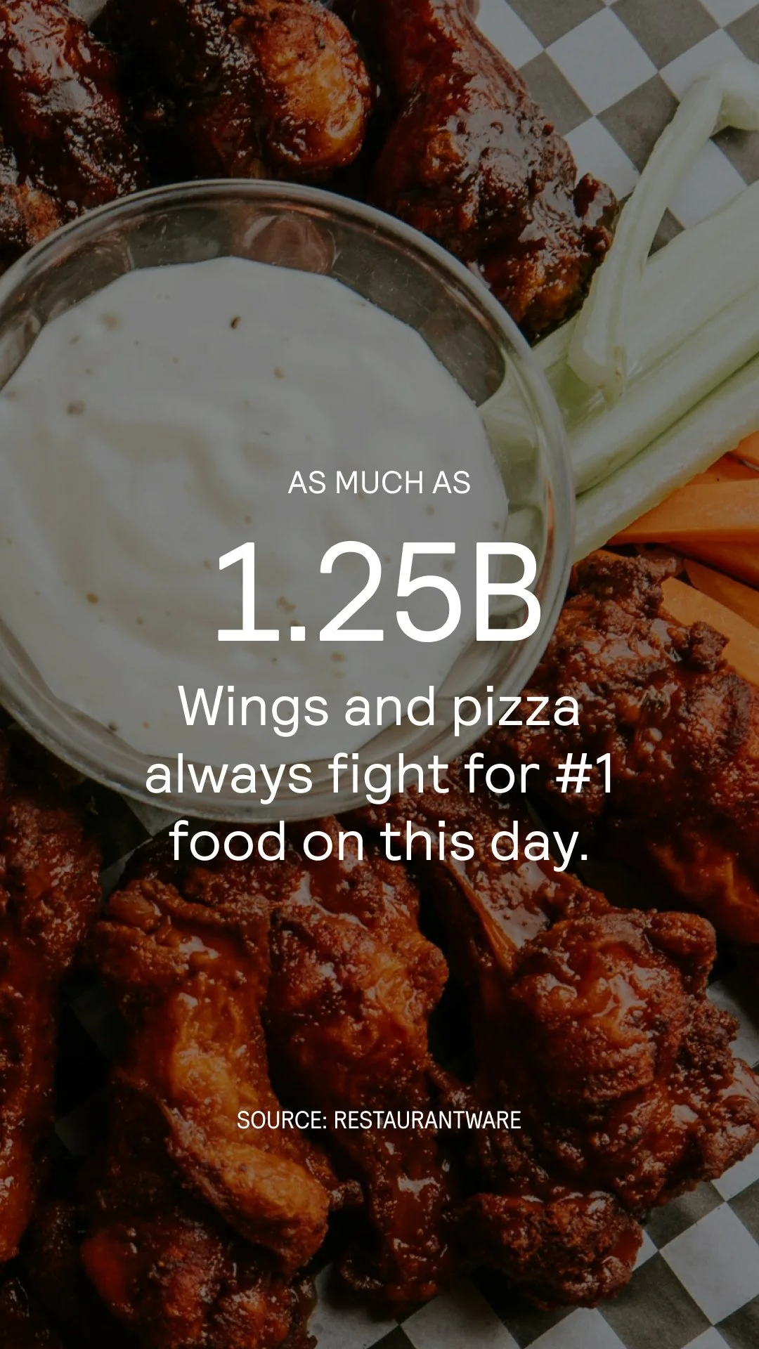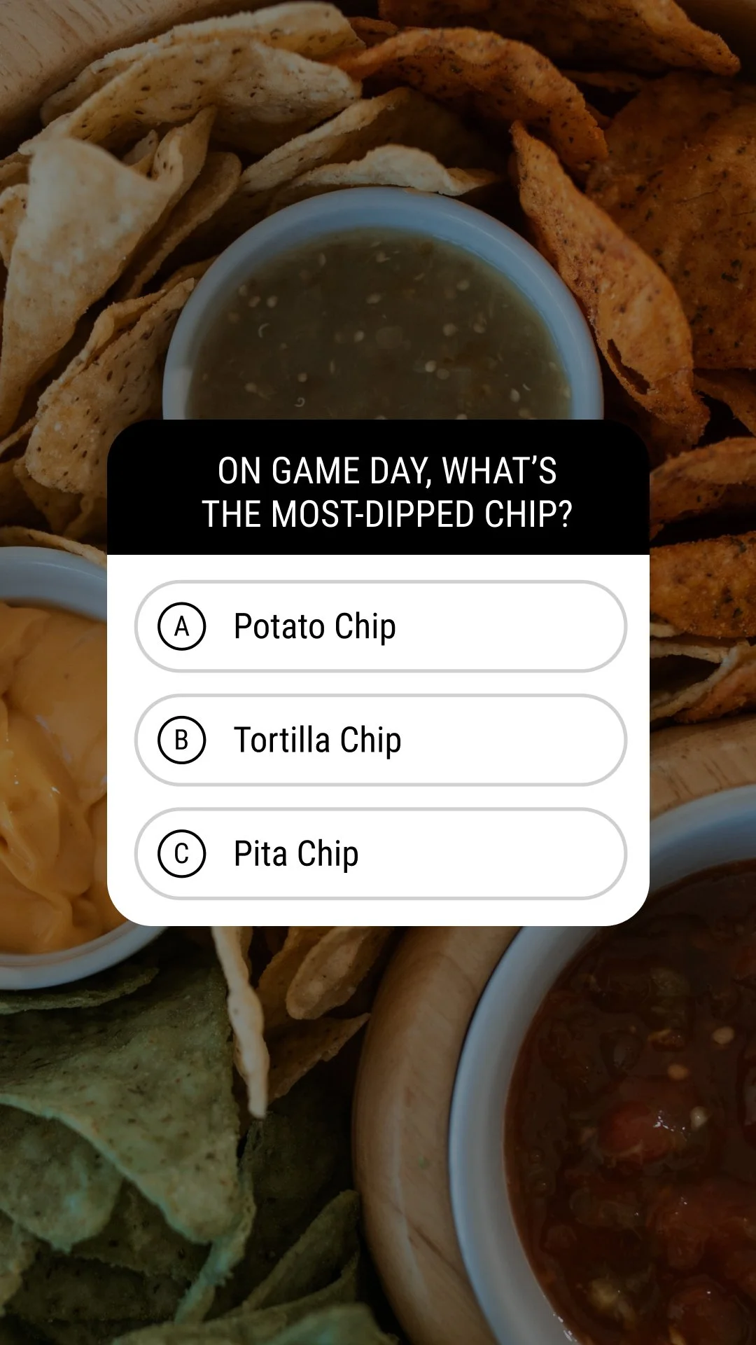 Football Snack StatsUsing the carousel below, swipe through ChowNow’s Instagram Stories to see our Big Game poll. Slide 1 Slide 1 (current slide) Slide 2 Slide 2 (current slide) Slide 3 Slide 3 (current slide) Slide 4 Slide 4 (current slide) Slide 5 Slide 5 (current slide) Slide 6 Slide 6 (current slide) Slide 7 Slide 7 (current slide) Slide 8 Slide 8 (current slide)