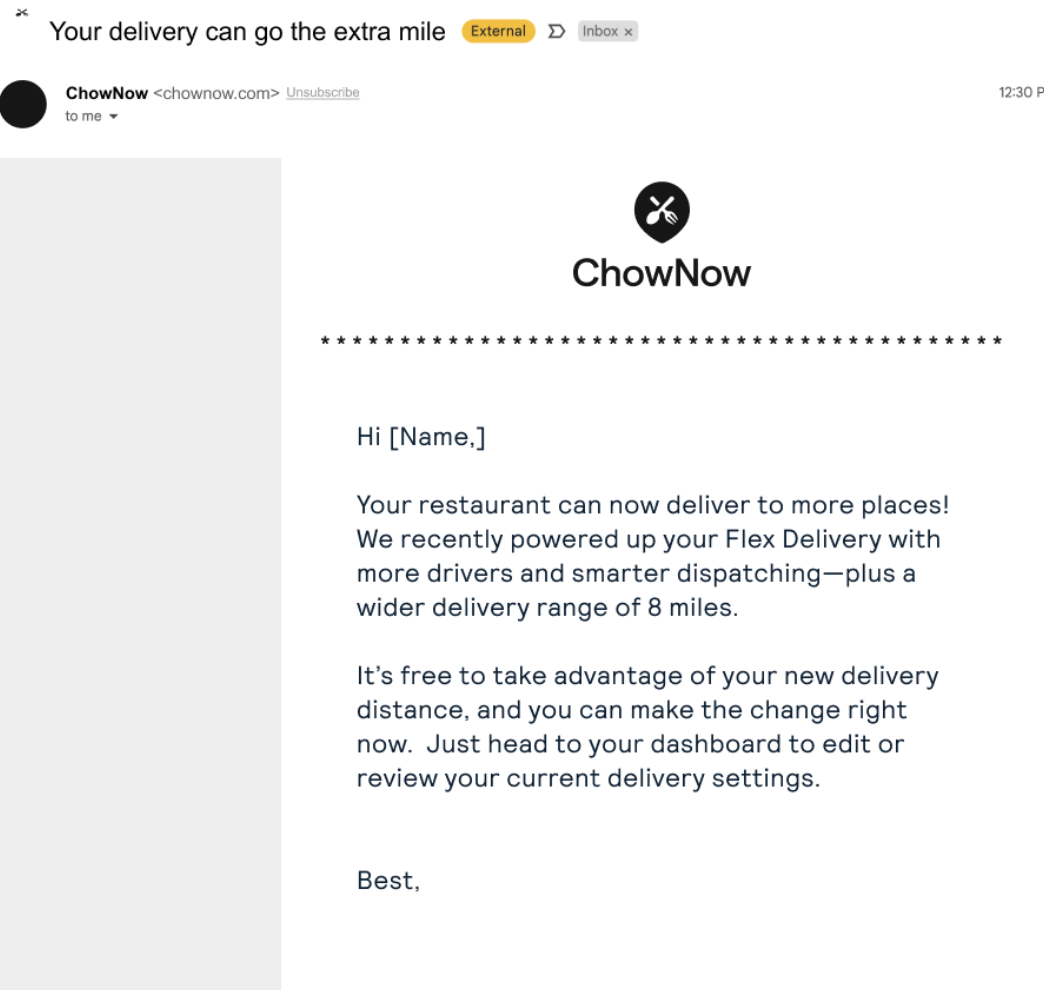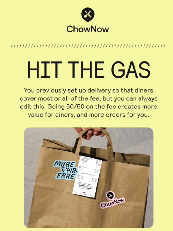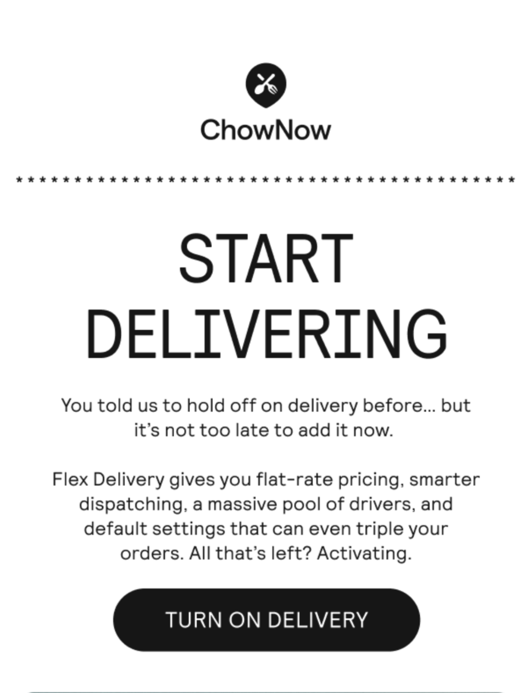 Most restaurants can’t afford to keep their own delivery fleet. ChowNow’s solution gives them profitable, on-demand access to a fleet of drivers — all plugged into their online ordering.